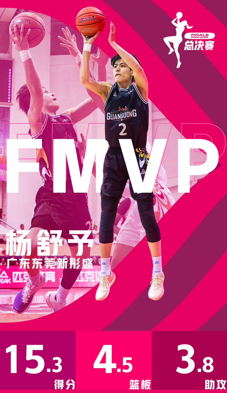 杨舒予凭借场均15.3分4.5篮板3.8助攻斩获总决赛最有价值球员。
